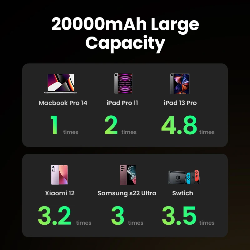 UGREEN 100W Fast Charging External Battery Power Bank 20000mAh PD3.0 PowerBank for Laptop Notebook iPhone 16 Pro Max Fast Charge